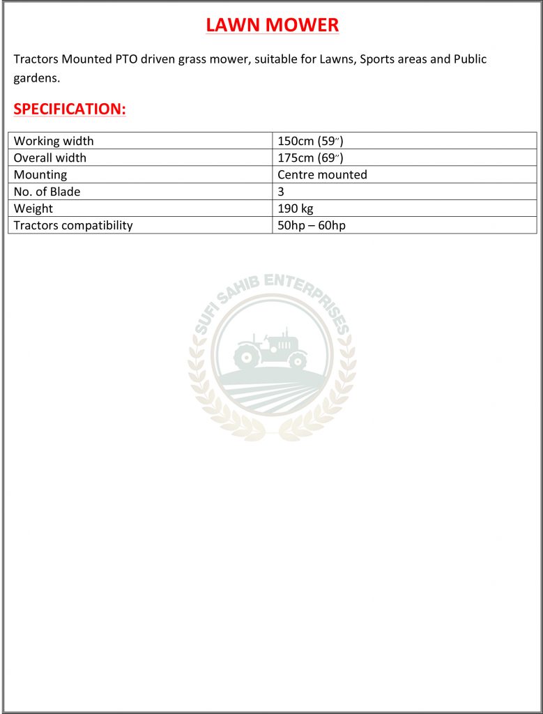 Tractors Mounted PTO driven mower which is suitable for Lawns, Sports areas and Public gardens.